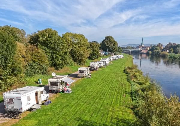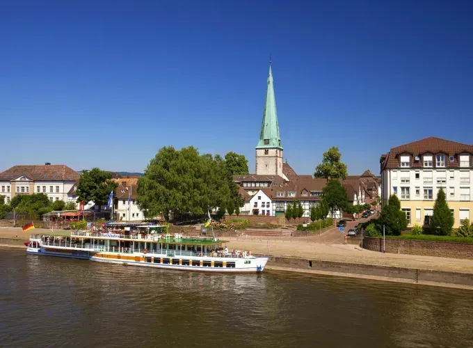 Our hotel, the "Weserhotel Schwager," is located directly on the Weser River and within walking distance of Holzminden's old town. The hotel has a large free parking lot and additional paid underground parking spaces (€15 per day).